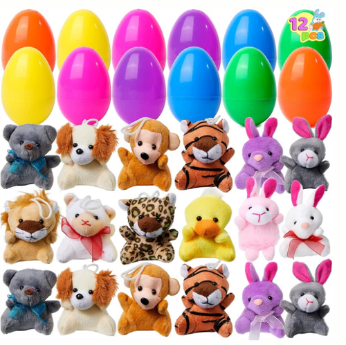 🎁Easter Hot Sale😍12 PCS Prefilled Easter Eggs, Filled with Plush Animal Toys - Water-Resistant Plastic Shells